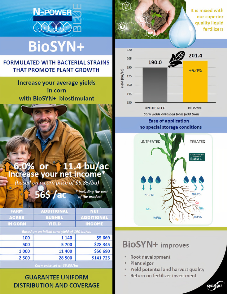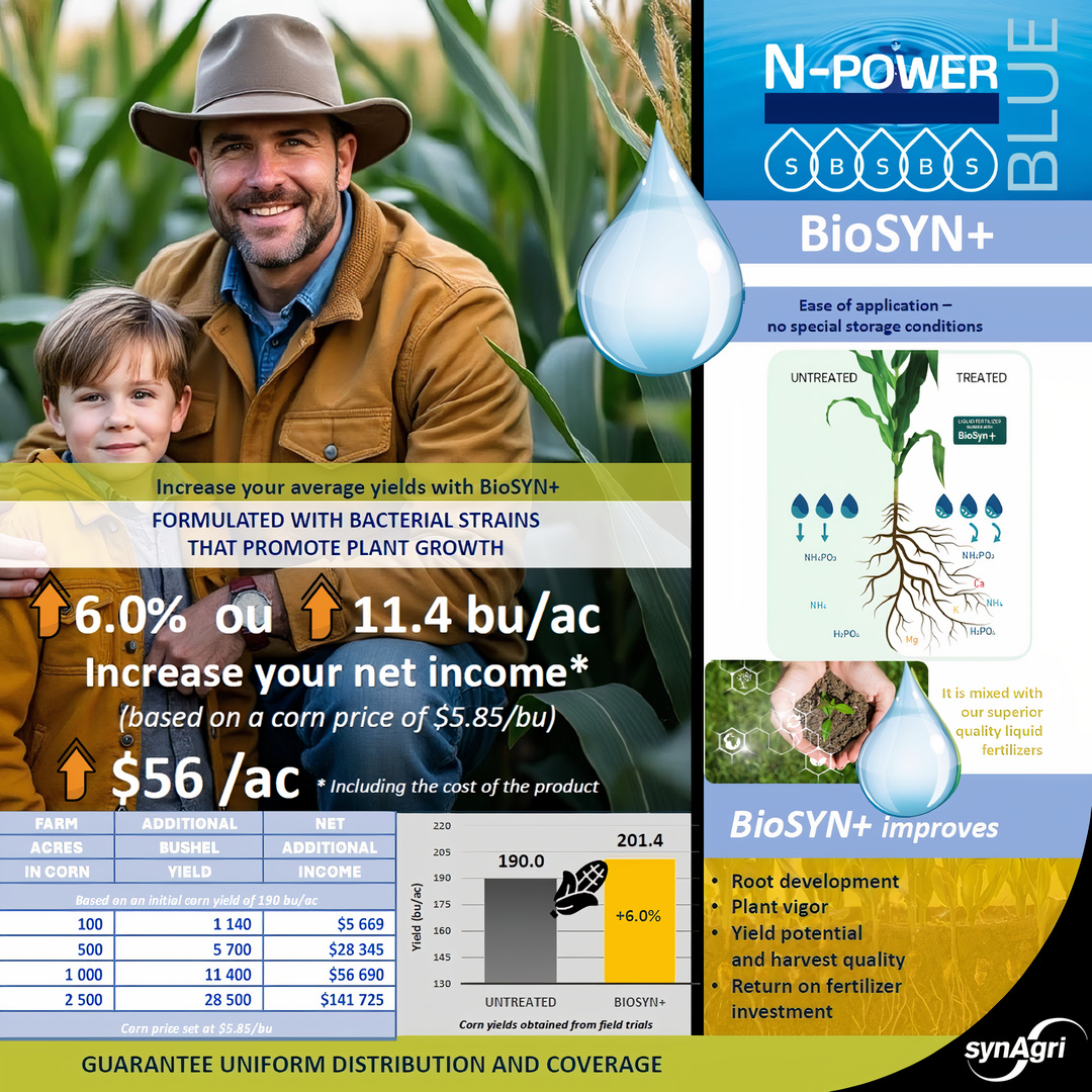 Enhance Your Soil Fertility with N-Power Blue BioSYN+! 👉 Contact a representative to learn more! 👉 https://www.synagri.ca/en/contact/